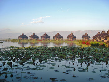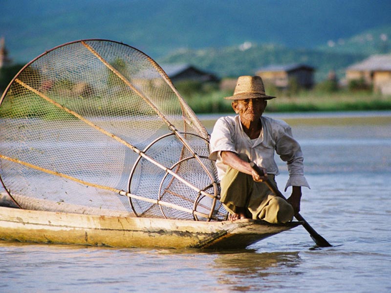 Floating huertas - una atracción tradicional de Inle Lake, invariablemente atrae turistas aquí. El lago se encuentra en un valle, y comenzar de inmediato la línea de las laderas de las montañas costeras. Por lo tanto, los residentes locales cultivan verduras directamente en el lago. Composición especialmente seleccionados del suelo en el que se plantan las plántulas, no permite una cama a hundirse, y un ancla especial o polo conectado a la parte inferior de la cama de flores. Y luego el caso del propietario - ir periódicamente en torno a un barco mi jardín, deshierbe y la cosecha ella. Particularmente conocida por los tomates Lago Inle. Pueden intentar, parando para almorzar en uno de los restaurantes que se encuentran en el lago. Si el propietario decide vender su jardín - que sólo transporta camas en el barco al nuevo propietario.