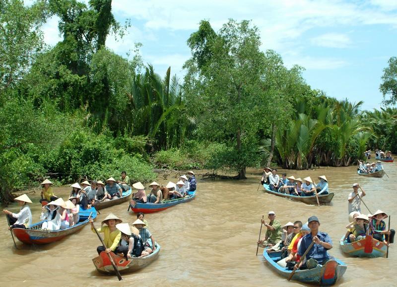 Nuestro barco le llevará más profundamente en el campo de los canales más pequeños y para disfrutar del tiempo de paz. Es muy interesante ver las casas tradicionales de madera con techo de hojas de palmera y ver algunas de las actividades de los agricultores locales la oportunidad de establecer contactos con ellos y ver cómo se pescan o recogen frutos de formas ancestrales en Mekong Delta ..