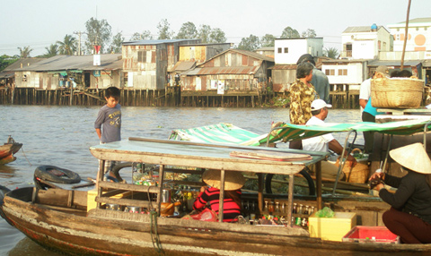 El barco está listo para nosotros para descubrir las vías de agua impresionantes de Mekong Delta a Cantho. Nuestra primera parada se hará en Cau Doi (doble puente) - Long Ho, visitaremos un astillero ocupada, donde los locales están construyendo barcos y sampanes...