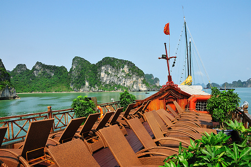 Levántate con el sonido del océano viene a la vida por un día precioso. Antes del desayuno, usted puede tener la oportunidad de ver la salida del sol sobre la bahía. Después del desayuno, navegaremos a la montaña Bai Tho en la otra hermosa Bai Tu Long Bay y navegamos de vuelta al puerto de Halong. Almuerzo en el barco antes de la salida es a las 11:45. Barco llega a puerto antes de las