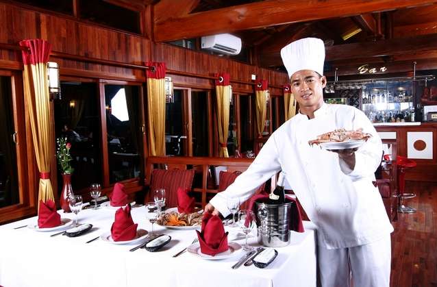 Recogida en su hotel en Hanoi a las 8: h00 am para un viaje de cuatro horas por el Delta del Río Rojo a la cuidad Ha Long. A su llegada a la ciudad de Halong, nos trasladaremos al de un junco de vela de madera reformado para un crucero a través de los acantilados de piedra caliza y las aguas esmeralda de la bahía de Halong, que nos da la oportunidad de disfrutar de los impresionantes paisajes de este Patrimonio de la Humanidad designado por la UNESCO. A bordo, el que se sirve un fresco, comida mariscos suntuosa seguidos de la natación y explorar algunas de las cuevas de piedra caliza en esta zona. Cuando el sol desciende soltamos el ancla para la noche cerca de una isla remota.
