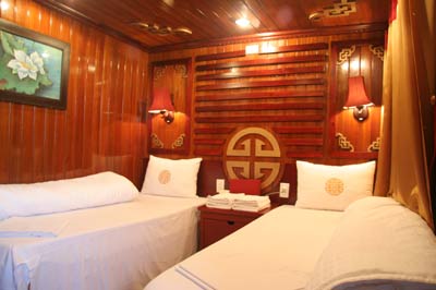- Alojamiento en cabina doble (con llave) en la barco tradicional (Cabina con A / C, baño privado, agua caliente y fría)