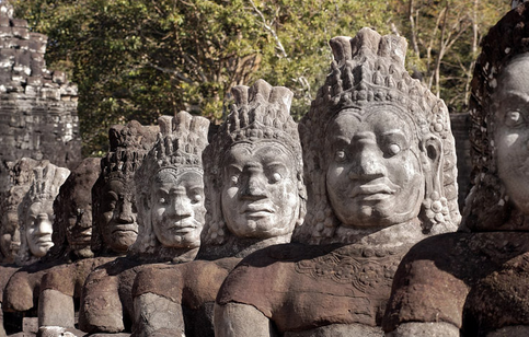 Desayuno en el hotel. En la mañana, visita de la Puerta del Sur (con sus enormes estatuas que representan la agitación del océano de leche), la antigua capital de Angkor Thom (siglo 12), el templo de Bayon (único por sus 54 torres decoradas con más de 200 caras sonrientes de Avolokitesvara ), Baphuon (recientemente reabierto después de años de restauración), el Royal Enclosure, Phimeanakas, la Terraza Elefantes y la Terraza del Rey Leproso. Almuerzo en el hotel. Visite el más famoso de todos los templos en la llanura de Angkor: Angkor Wat. El complejo del templo cubre 81 hectáreas y es comparable en tamaño al Palacio Imperial en Beijing. Sus distintivos son cinco torres blasonadas en la bandera camboyana y la obra maestra del siglo 12 es considerado por los historiadores del arte al ser el primer ejemplo de arte jemer clásica y la arquitectura. Cinco torres de Angkor Wat simbolizan cinco picos de Meru - el cerrado muro representa las montañas en el borde del mundo y el foso que rodea el océano más allá. Puesta del sol en Angkor Wat. Cena en restaurante local y alojamiento en hotel.