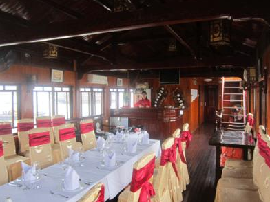 12.30 Almuerzo con mariscos frescos, mientras que los cruceros a través de la bahía de Halong que pasa por algunos de los lugares más pintorescos, incluyendo cuello del caballo, Con Coc Islet.