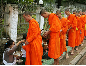 Si uno se levanta temprano hay una buena oportunidad de ver todos los días un ritual matutino en Lao. Los monjes llevan sus platos, camina a mínimas ciudad y da bendición para los locales los que le suministran las ofertas (sobre todo arroz pegajoso). Después del desayuno, una excursión de un día a las hermosas cascadas de Kuang Si en las aguas de color turquesa en cascada sobre formaciones de piedra caliza. La abundancia de agua forma una magnífica muestra de la naturaleza. Debajo del Kuang Si es un grande estanque perfecta para nadar y refrescarse bajo la ducha. Antes de disfrutar de un almuerzo al aire libre junto a las piscinas, pasaremos estupendos paisajes, bosques de teca y varios pueblos de minorías étnicas (Hmong y Khmu). Cerca de las cataratas es la pena de visitar un centro donde el peligro cervezas asiáticas negro encontró un refugio seguro. Si tenemos tiempo suficiente, seguiremos a Ban Phanom Ban Xiang Lom o la aldea que teje por las excelentes piezas de textiles de Laos.