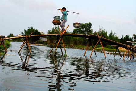 Después del almuerzo, el barco de remo le llevará más profundamente en el campo en canales más pequeños y para disfrutar del tiempo de paz. Es muy interesante ver las casas tradicionales de madera y hojas de palmera y ver algunas de las actividades de los agricultores locales la oportunidad de establecer contactos con ellos y ver cómo se pescan o recogen frutos de formas ancestrales en Mekong Delta ..