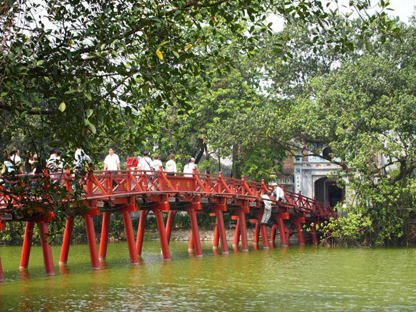 Después del almuerzo en un restaurante local, disfrutar de un recorrido ciclo de una hora tranquilamente por Hanoi. Visita el hermoso Lago Hoan Kiem y Templo de Ngoc Son. Hoan Kiem ya era considerado el lago más hermoso en Hanoi cuando el Templo Ngoc fue construido en una isla en el siglo 19. Inicialmente, el templo fue llamado Pagoda Ngoc Son y más tarde pasó a llamarse el Templo Ngoc Son, desde templos están dedicados a santos. San Van Suong, considerada como una de las estrellas más brillantes en los círculos literarios e intelectuales de Vietnam, era adorado allí junto con otros héroes nacionales.
