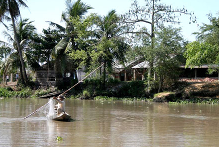 El barco de remo le llevará más profundamente en el campo en canales más pequeños y para disfrutar del tiempo de paz. Es muy interesante ver las casas tradicionales de madera y hojas de palmera y ver algunas de las actividades de los agricultores locales la oportunidad de establecer contactos con ellos y ver cómo se pescan o recogen frutos de formas ancestrales en Mekong Delta ..