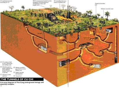 El viaje a Tay Ninh se combina con una visita a los túneles de Cu Chi. En su apogeo el sistema túnel se extendía más de 200 km. desde Saigón a la frontera con Camboya y fue tres niveles de profundidad. La red incluye trampillas innumerable, zonas construidos especiales, instalaciones de almacenamiento, fábricas de armas, hospitales,campaña, centros de mando y cocinas. Hoy en día los túneles restantes se han convertido en una importante atracción turística dando al visitante una experiencia única y una sensación de lo que la vida bajo tierra en la guerra de Estados Unidos debió haber sido. Los túneles se han ampliado para nuestro beneficio (de lo contrario no seríamos capaces de entrar en ellos!) Para los interesados hay incluso la oportunidad de disparar rondas de un AK47 o MK16 en el campo de tiro cerca.