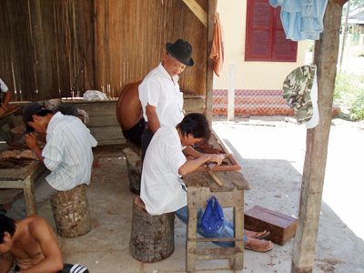 Pueblo carpintería Kim Bong se encuentra en Cam Kim Hamlet. Este pueblo es muy famoso por su carpintería, ya que casi toda la arquitectura antigua Hoian fueron producidos por las manos talentosas de sus antepasados en un momento en Hoi An floreció como un importante puerto marítimo. Los técnicos carpinteros en Kim Bong son my profesionales. Sus obras escultóricas sobre la cabeza de tijeras, oblicuos, escritorios, altares, muebles, armarios, bandejas, y similares, son obras maestras admiradas por todos. Hoy, los carpinteros en pueblo Kim Bong todavía se conservan su antigua carrera, aunque ha habido muchos de ellos que han pasado a la construcción naval y la recuperación de monumentos o vestigios históricos. Muchos productos se venden como recuerdo para los turistas o supervisan.